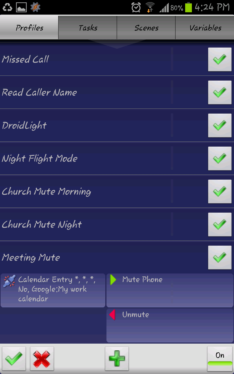 - Be selective in which calendars that you wish to trigger off. This means that not every even needs to mute your phone. Instead, I only mute the phone during church and work meetings.
